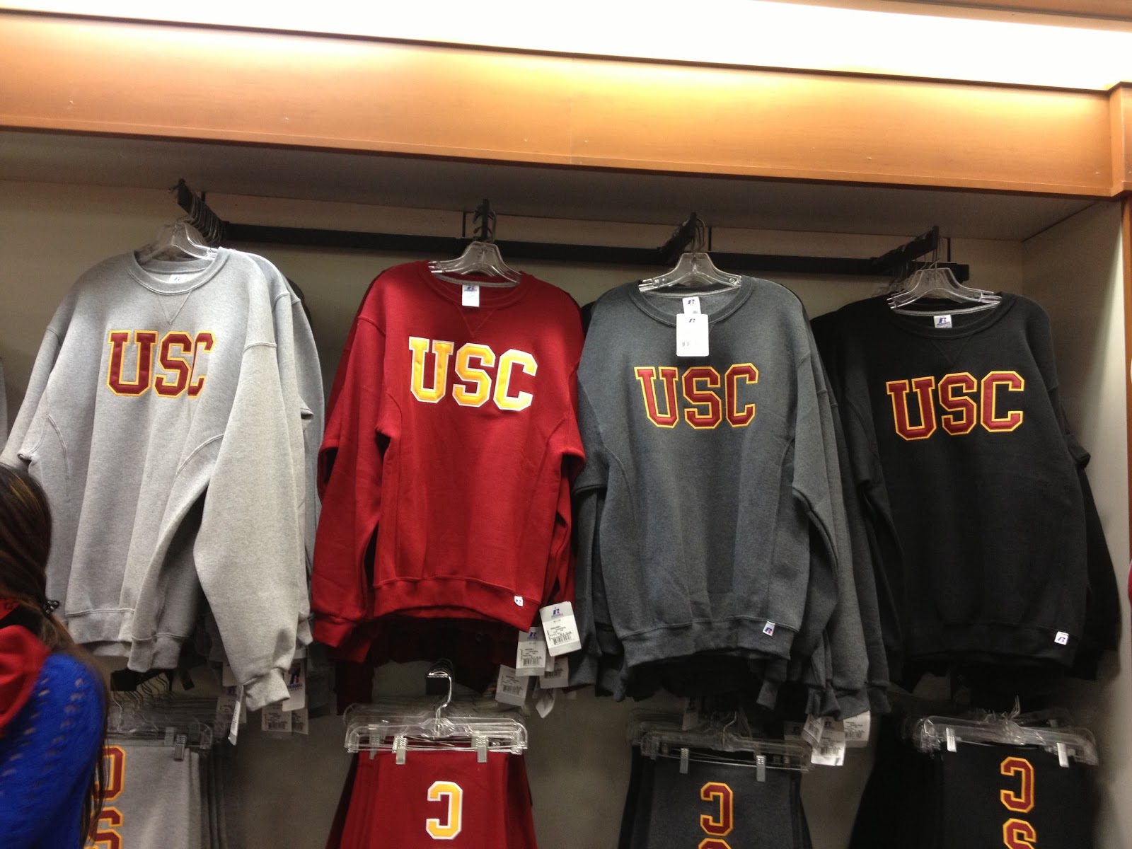 I really want to get a USC sweatshirt. Probably the black one.. but they never have small sizes.. I've been back twice already. Maybe I should get a batman sweatshirt instead.
